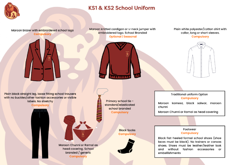 The uniform can be purchased from Fashion Mark, High Street, Southall, UB1 3HA (Telephone 020 8813 8841).
